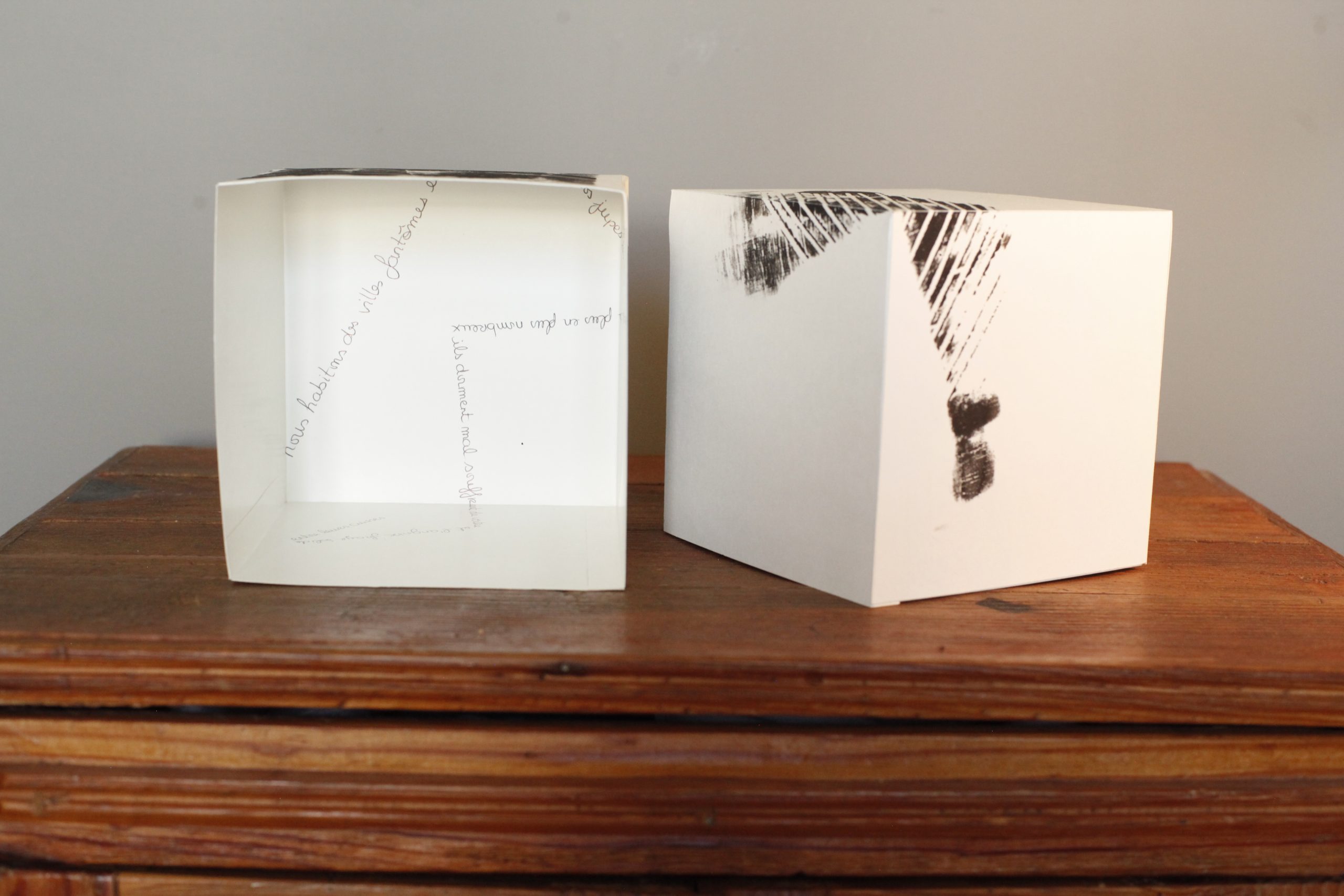Un cube de papier peut en cacher bien d’autres. De ce ventre premier, immaculé, sont nés 39 autres mondes marqués par le passage des saisons.