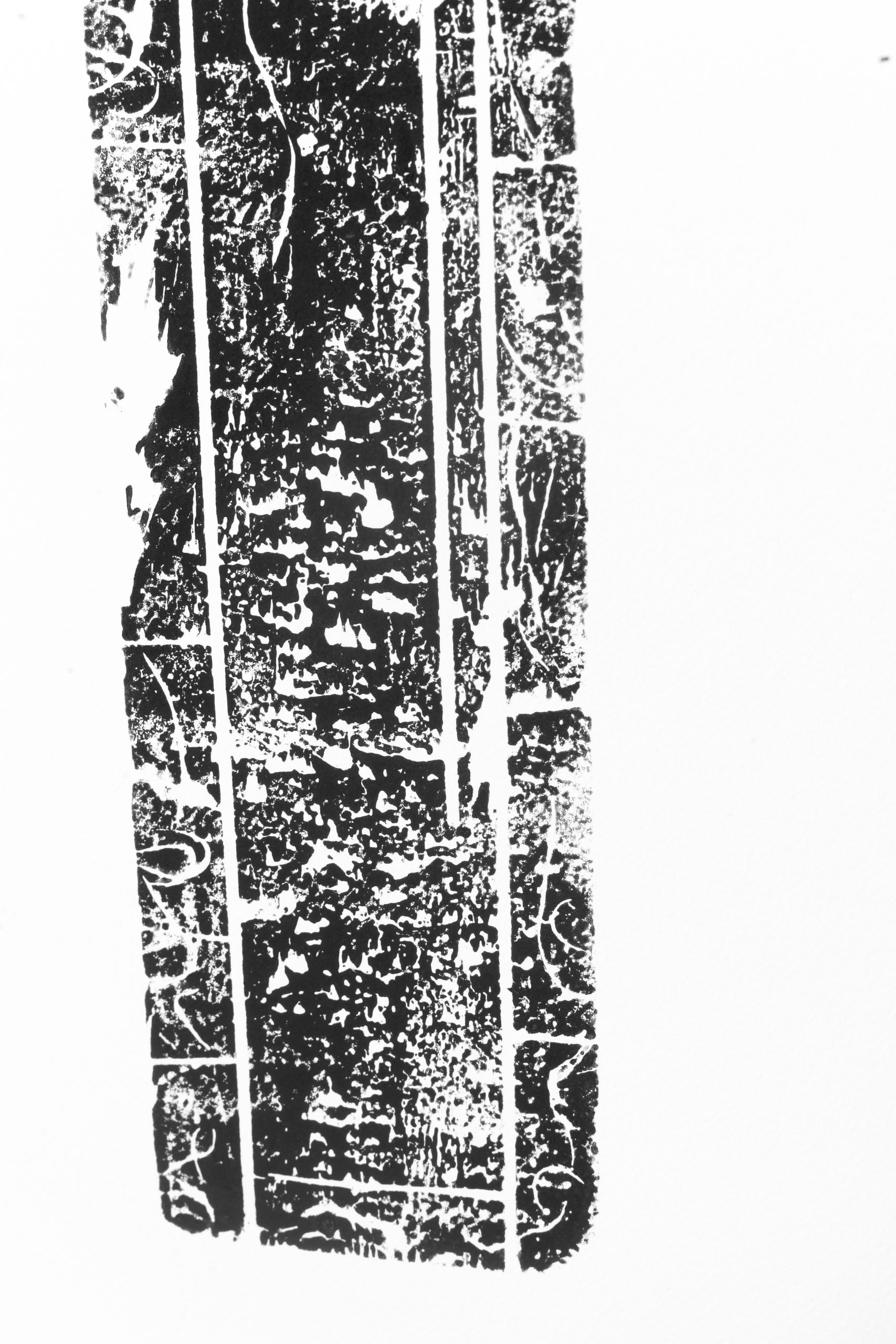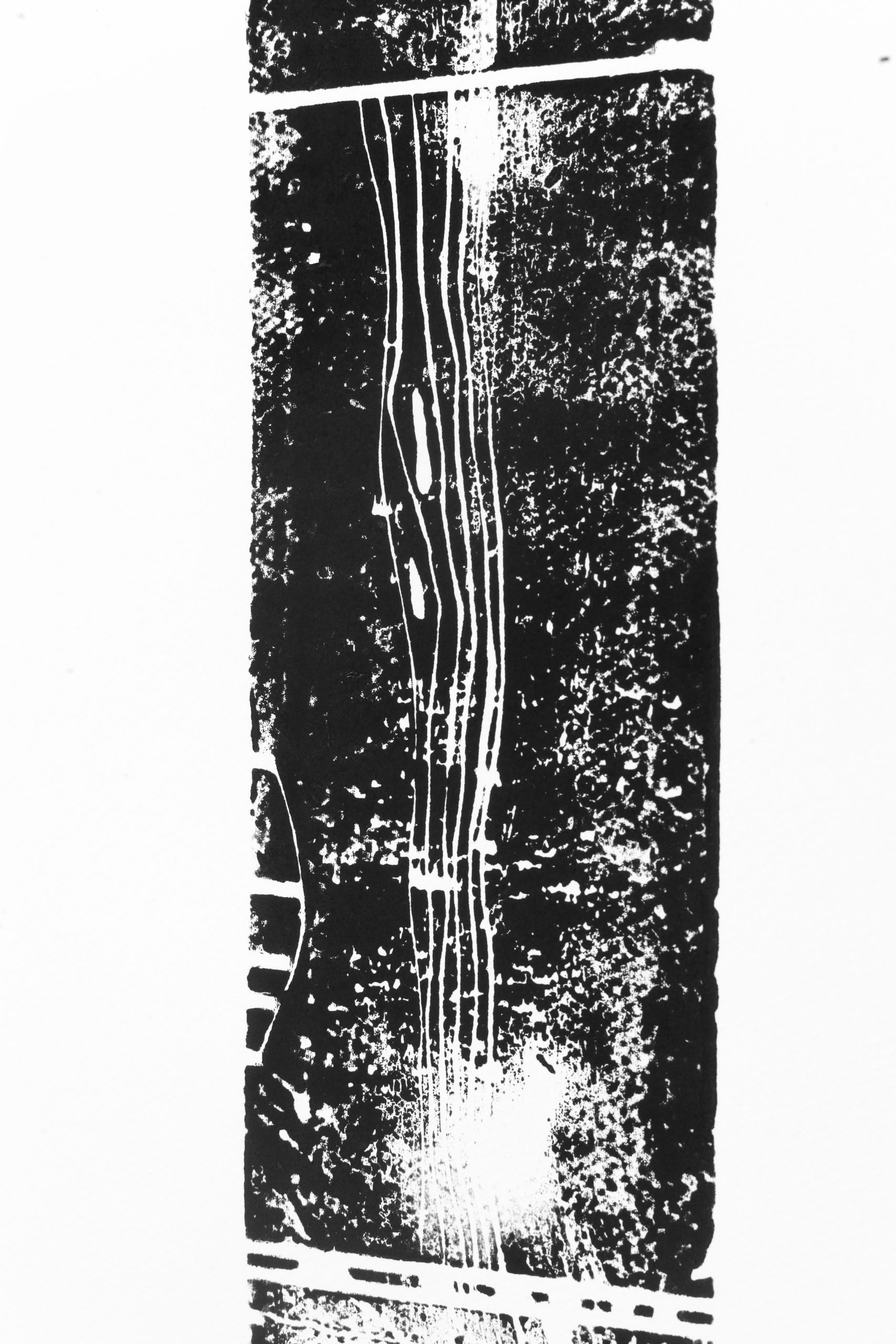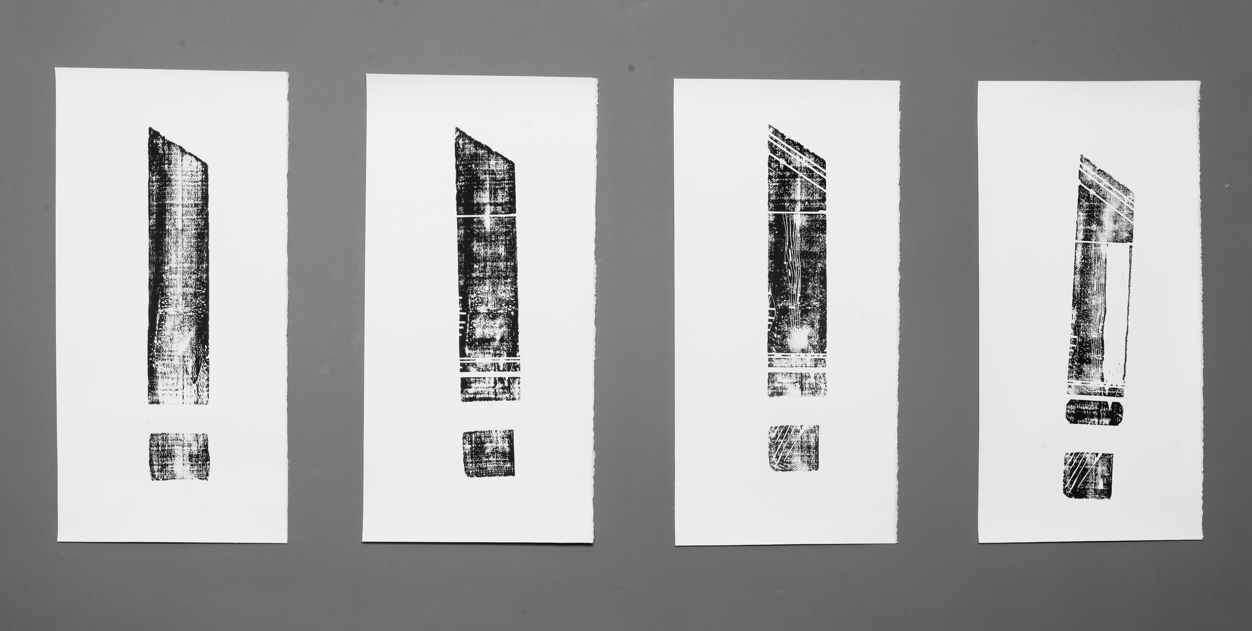 Il était important de conserver des traces de la temporalité de l’évènement lui-même. J’aime travailler sur le phénomène de l’empreinte, dans ma pratique photographique autant que dans d’autres médiums. Dans ce travail, une complémentarité entre sculpture et estampe s’est imposée. Le témoignage analogique de mes interventions sur la douelle s’est matérialisé sur papier par la xylogravure.