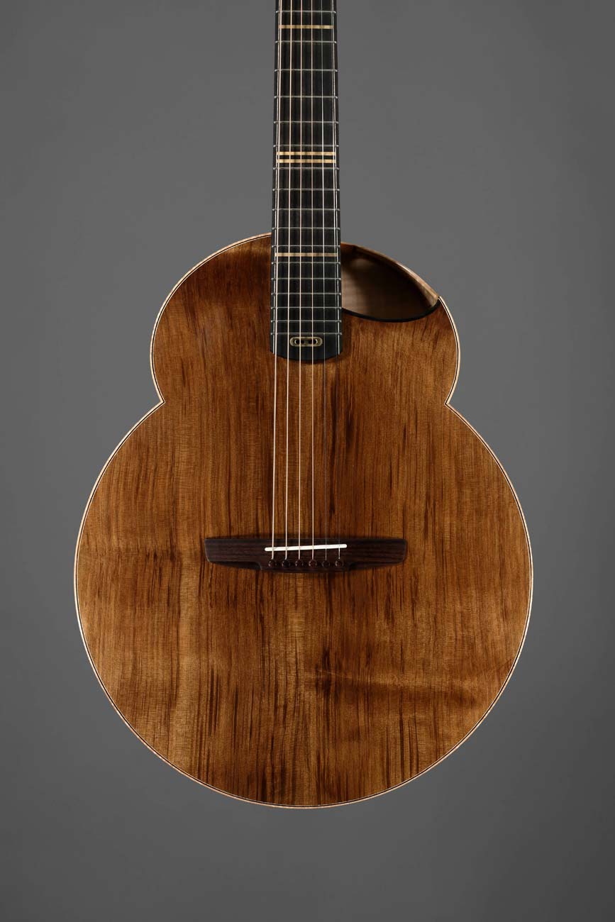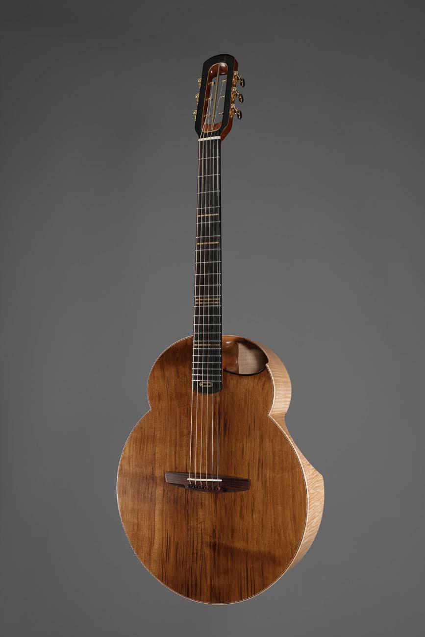 L’instrument a été développé selon deux axes techniques : la jonction du manche avec la caisse d’une part et la calibration acoustique de la caisse d’autre part. Il en résulte une guitare esthétiquement originale, agréable à jouer, avec une sonorité riche et des basses puissantes.